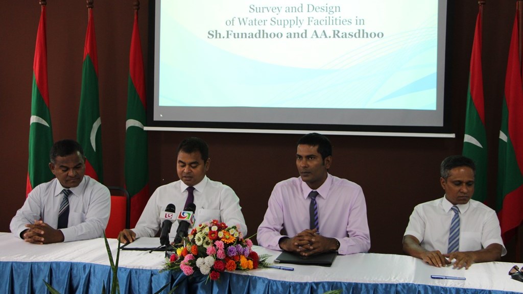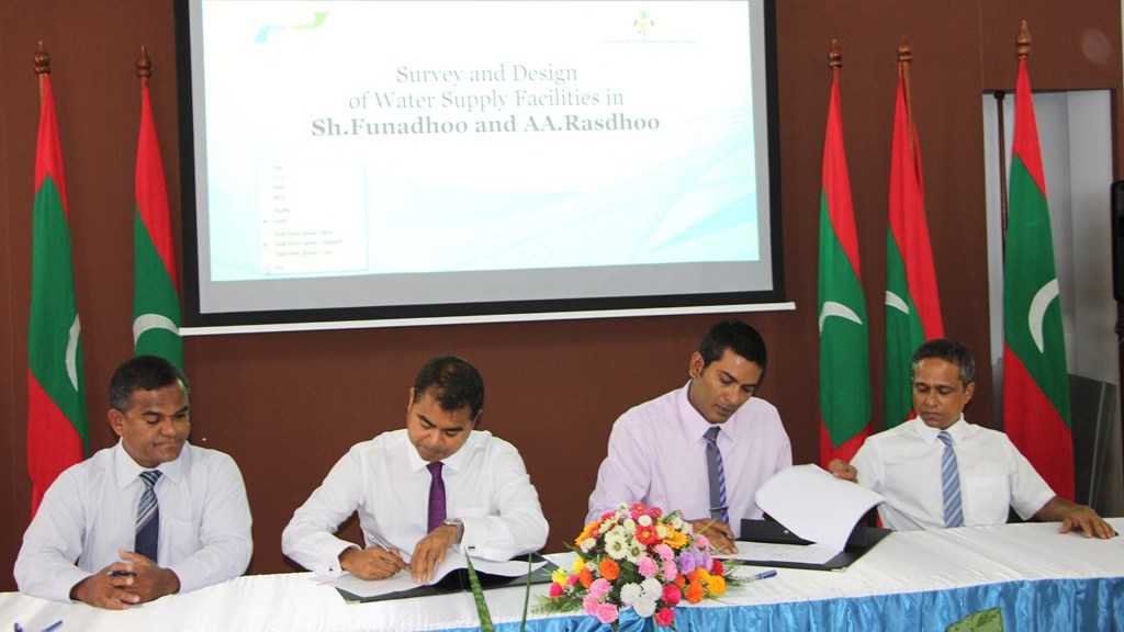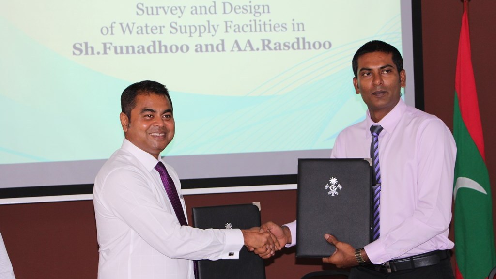 އއ. ރަސްދޫ އަދި ށ. ފުނަދޫގެ ފެނުގެ ޑިޒައިން މަސައްކަތް ކުރުމަށް އެމް.ޑަބްލިއު.އެސް.ސީ އާއިއެކު އެމް.އޯ.ޔޫ އެއްގައި ސޮއިކޮށްފިއެވެ. މި އެމް.އޯ.ޔޫ ގައި މިނިސްޓްރީގެ ފަރާތުން ސޮއިކުރެއްވީ މިނިސްޓަރ އޮފް އެންވަޔަރަންމަންޓް އެންޑް އެނަރޖީ، އަލްފާޟިލް ޠާރިޤް އިބްރާހީމެވެ. އަދި އެމް.ޑަބްލިއު.އެސް.ސީ ގެ ފަރާތުން ސޮއިކުރެއްވީ އެ ކުންފުނީގެ މެނޭޖިންގ ޑިރެކްޓަރ އަލްފާޟިލް ފަޒުލް ރަޝީދެވެ.