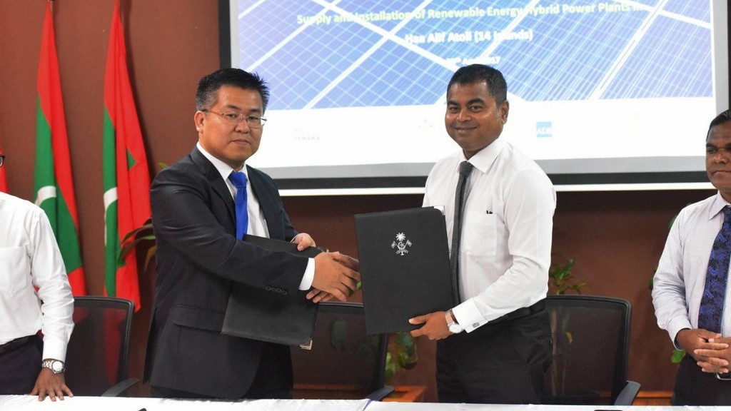 ހއ އަތޮޅުގެ މީހުން ދިރިއުޅޭ ހުރިހާ ރަށެއްގައި ހަކަތައިން ކަރަންޓު އުފައްދާ ނިޒާމު ހަރުކޮށް އެ ޚިދުމަތް ދިނުމަށް ބަޔަކާ ޙަވާލުކޮށްފިއެވެ. އެގޮތުން މި މަސައްކަތް ޙަވާލުކޮށްފައިވަނީ ޗަންގް ޒޫ ޓްރީނަރ ސޯލަރ އެނަރޖީ ކޯޕަރޭޝަން ލިމިޓެޑާއެވެ. މި މަސައްކަތުގެ އެއްބަސްވުމުގައި މިނިސްޓްރީގެ ފަރާތުން ސޮއިކުރެއްވީ މިނިސްޓަރ އޮފް އެންވަޔަރަންމަންޓް އެންޑް އެނަރޖީ، އަލްފާޟިލް ޠާރިޤް އިބްރާހީމެވެ. އަދި ޗަންގް ޒޫ ޓްރީނަރ ސޯލަރ އެނަރޖީ ކޯޕަރޭޝަން ލިމިޓެޑްގެ ފަރާތުން ސޮއިކުރެއްވީ އެ ކުންފުނީގެ ޑެޕިއުޓީ ޖެނެރަލް މެނޭޖަރ ބްރަޔަން އެވެ. އިއާދަކުރަނިވި ހަކަތައިގެ ވަސީލަތްތައް ބޭނުންކޮށްގެން ކަރަންޓު އުފެއްދުން އިތުރުކުރުމަށް ހައިބްރިޑް ސިސްޓަމްތަކެއް ޤާއިމުކުރުމުގެ މަސައްކަތް ކުރިއަށް ގެންދާއިރު މި މަޝްރޫޢުގެ ފުރަތަމަ ފިޔަވަހީގެ ޢަމަލީ މަސައްކަތްތައް މިހާރުވަނީ ނިމި ބައެއް ރަށްރަށުގައި އެޚިދުމަތްތައް ބޭނުންކޮށްގެން ކަރަންޓު އުފައްދަން ފަށާފައެވެ. މިއަދު ސޮއިކުރެވިގެން ދަނީ މިމަޝްރޫއުގެ ދެވަނަ ފިޔަވަހީގެ ބައެކެވެ. މިފިޔަވަހި އަމާޒުކުރެވިފައިވަނީ ހއ. އަތޮޅުގެ މީހުން ދިރިއުޅޭ ހުރިހާ ރަށަކަށެވެ. މިގޮތުން މިރަށްރަށުގައި 2.3 މެގަވޮޓްގެ ސޯލާ ޕީވީ ސިސްޓަމާއި، ޑީސަލުން ކަރަންޓު އުފެއްދުމަށް 17 ޖެނެރޭޓަރު (3.3 މެގަ ވޮޓް) އާއި، 2.5 މެގަވޮޓް އަވަރ ގެ ބެޓެރިއާއި، ކޭބަލާއި އޮޓަމެޓިކް ސިންކްރޮނައިޒިން ޕެނަލްބޯޑްތައް ހުރިހާ ރަށެއްގައި ބެހެއްޓިގެންދާނެއެވެ. މިސިސްޓަމް ފުރިހަމަ ކުރުމަށްޓަކައި ބޭނުންވާ އެނަރޖީ މެނޭޖްމަންޓް ސިސްޓަމްތައް ވެސް މިރަށްރަށުގައި ޤާއިމުކުރެވިގެންދާނެއެވެ.