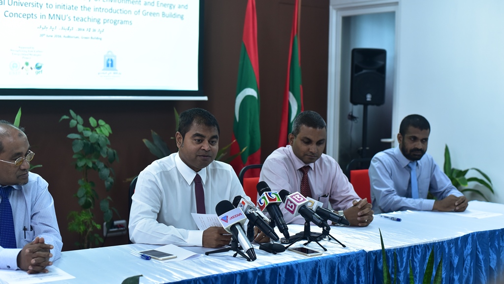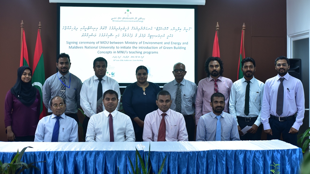 ދިވެހިރާއްޖޭގެ ޤައުމީ ޔުނިވަރސިޓީގެ ކޯސްތަކުގައި ‘ގްރީން ބިލްޑިންގ” ކޮންސެޕްޓްތައް ތަޢާރަފުކުރުމަށް މިނިސްޓްރީއާއި ދިވެހިރާއްޖޭގެ ޤައުމީ ޔުނިވަރސިޓީ އާއި ދެމެދު ފަހުމުނާމާއެއްގައި މިއަދު ސޮއިކޮށްފިއެވެ.