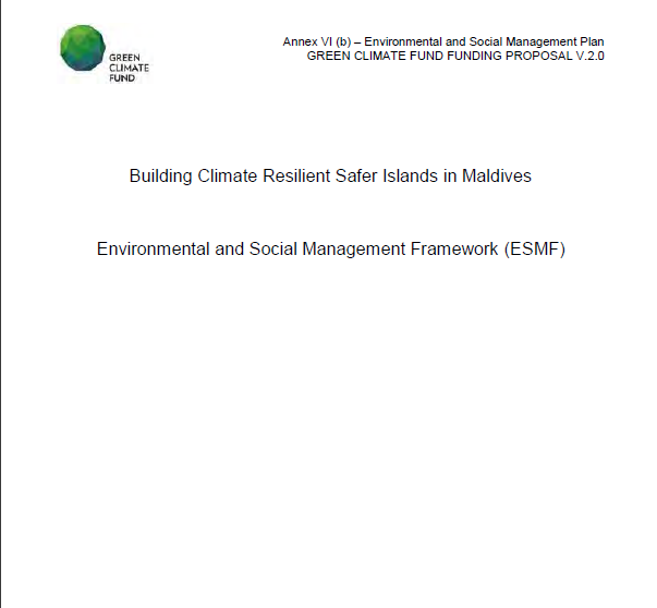 ބިލްޑިންގް ކްލައިމެޓް ރިސިލިއެންޓް ސޭފަރ އައިލެންޑްސް އިން މޯލްޑިވްސް – އެންވަޔަރަންމަންޓަލް އެންޑް ސޯޝަލް މެނޭޖްމަންޓް ފްރޭމްވޯރކް –