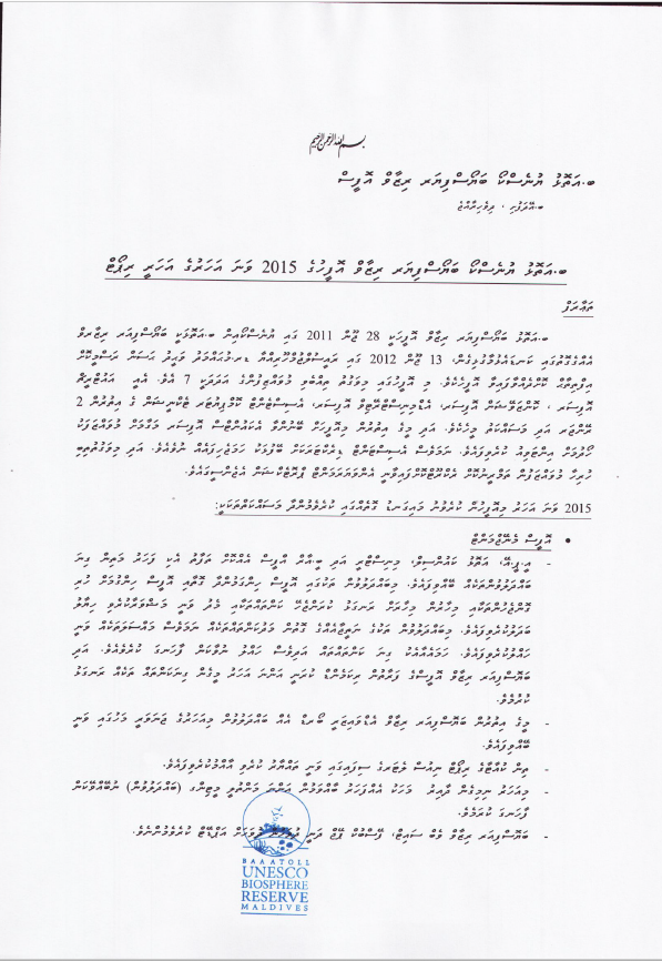 އަހަރީ ރިޕޯޓް 2015 – ބާ އަތޮޅު ބަޔޮސްފިއަރ ރިޒަރވް އޮފީސް