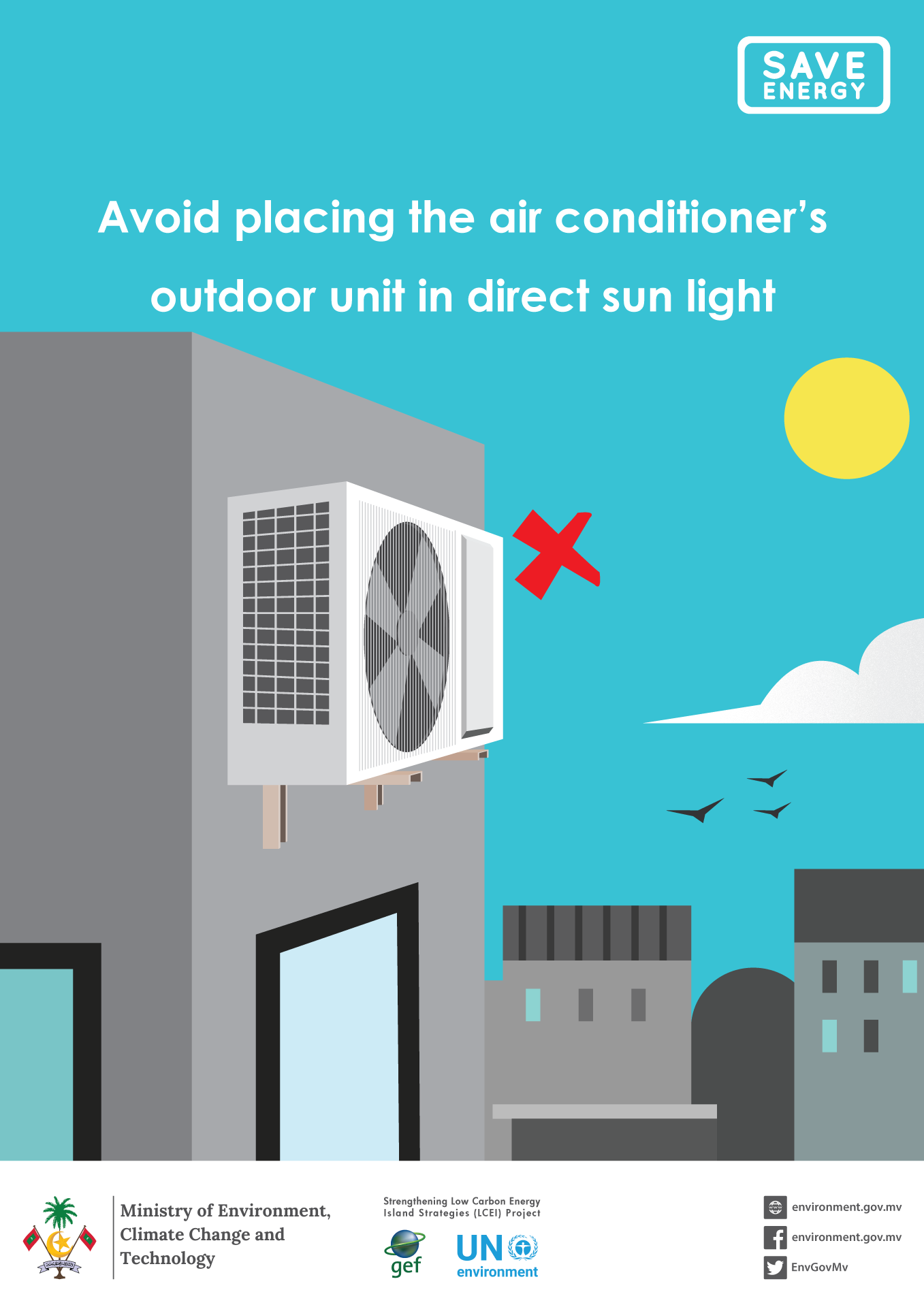 Awareness Material Poster: Avoid placing the air conditioner’s outdoor unit in direct sunlight22 Jun 2023 22 Jun 2023 Attachments (1) Poster: Avoid placing the air conditioner's outdoor unit in direct sunlight (165.54 KB)