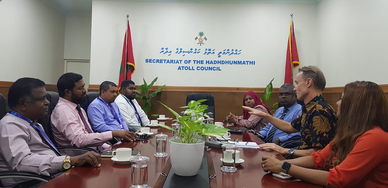 More from ENDhERI Project Task Manager field visit to Laamu17 Jan 2023 Biodiversity, Environment, Environmental Protection 17 Jan 2023 Task Manager for ENDhERI, Max Zieren meeting with members of Laamu Atoll Council during the field visit.