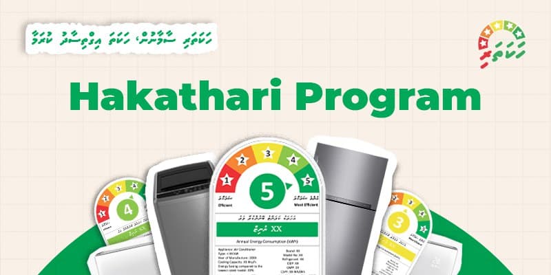 Hakathari Program is the Maldives’ Energy Efficiency Standards and Labelling Program. It sets minimum energy performance standards (MEPS) and assigns star-rated labels (1–5 stars) to appliances to help consumers make energy-efficient choices.