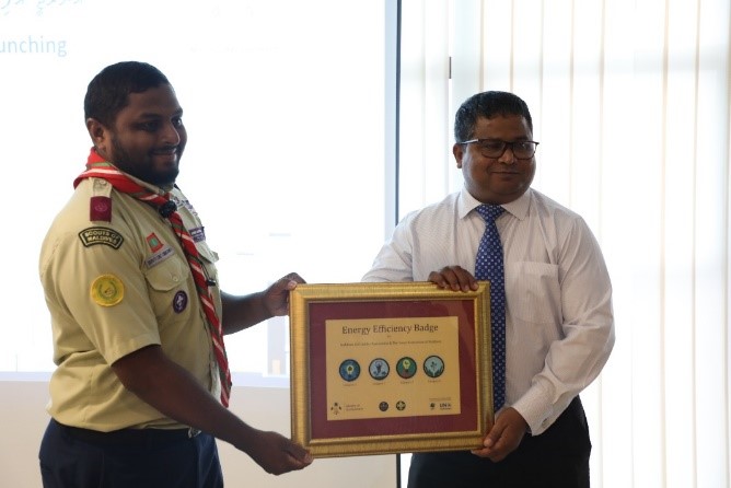 The Energy Efficiency Badge is designed to create awareness about adverse impacts of climate change, the benefits of energy efficiency in combating climate change, and the benefits of energy efficiency at the national and individual levels. This was carried out under the project Strengthening Low Carbon Energy Island Strategies (LCEI). The project was funded by the Global Environment Facility (GEF) and executed by the Ministry with implementation support from UN Environment.