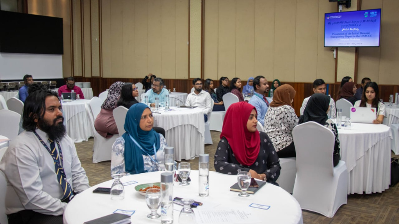 At the opening ceremony of the inception workshop, the Special Envoy for Climate Change, Mr. Ali Shareef, emphasized the significance of this activity. He highlighted that the initiative should not be viewed merely as the development of another report. Instead, the focus should be on the data and analysis that contribute to the report. This process should serve as a catalyst for institutional development and contribute to the broader development of the nation.