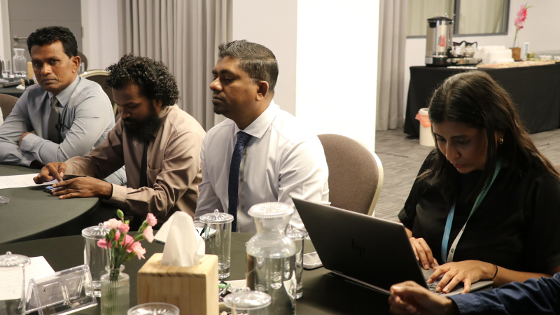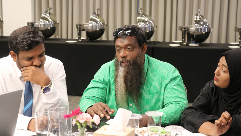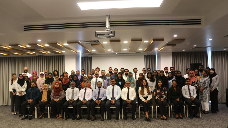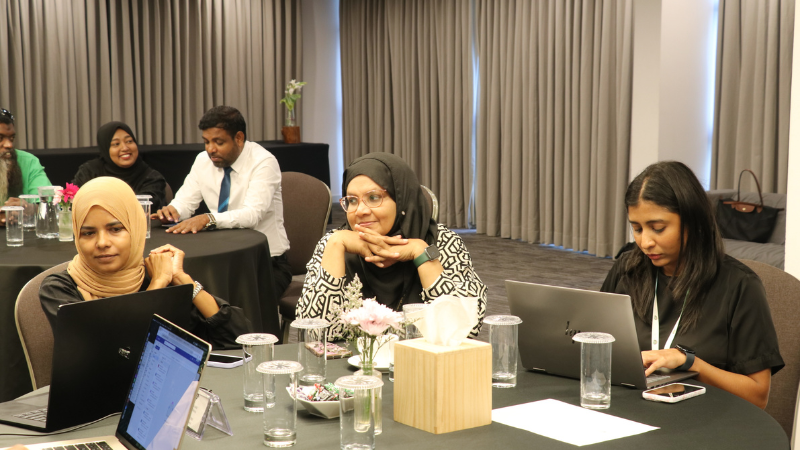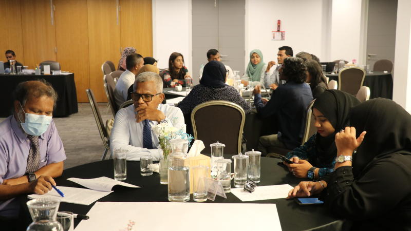 A total of 57 participants attended the workshop, representing a wide range of stakeholders. These included the Ministry of Finance and Planning, Ministry of Fisheries and Ocean Resources, Ministry of Social and Family Development, Ministry of Economic Development and Trade, Ministry of Cities, Local Government and Public Works, Ministry of Construction, Housing and Infrastructure, Ministry of Youth Empowerment, Information and Arts, and the Ministry of Health, including the Maldives Food and Drug Authority. Also in attendance were representatives from the National Disaster Management Authority, National Institute of Education, State Trading Organization, Maldives National University, Maldives Islamic University, and the Health Protection Agency. Council representatives included those from HA. Ihavandhoo, N. KudaFari, Kulhudhuffushi City, Thinadhoo City, Fuvahmulah City, Addu City, and the N. Atoll Council. In addition, several non-governmental organizations participated in the workshop.