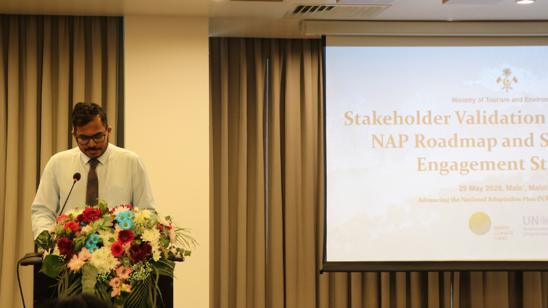 A Stakeholder Validation Workshop on the National Adaptation Plan (NAP) Roadmap and Stakeholder Engagement Strategy on 29 May 2025. The workshop was conducted under the Advancing the National Adaptation Plan of the Maldives (NAP Maldives) project, funded by the Green Climate Fund (GCF) and implemented by the Ministry in collaboration with the United Nations Environment Programme (UNEP).