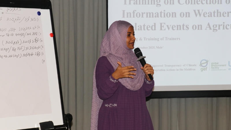 The Climate Change Department of the Ministry of Tourism and Environment successfully conducted a two-day Training and Training of Trainers (ToT) on the Collection of Information on Weather-Related Events in Agriculture, held on 21st and 22nd October 2025 at Meeruma, Malé.