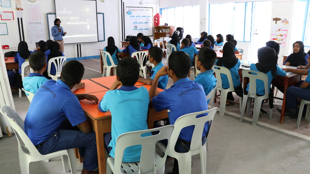 The workshop was inaugurated by the Principal of Thoddoo School Mr. Moosa Solih and the President of Thoddoo Council Ms. Khadheeja Niusha. Speaking at the inauguration, Principal highlighted the students on the importance of using energy in a more efficient manner and the need to conserve energy. “Today environment has become the most prominent topic in the global context, you as students have to be aware of these topics and need to learn how to fight against environmental degradations, climate change and other environmental impacts. Try to learn from them and make use of the information you obtain through this workshop” he added.