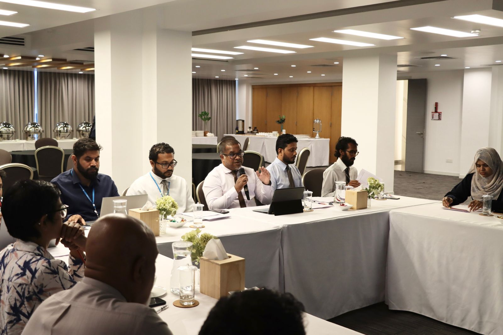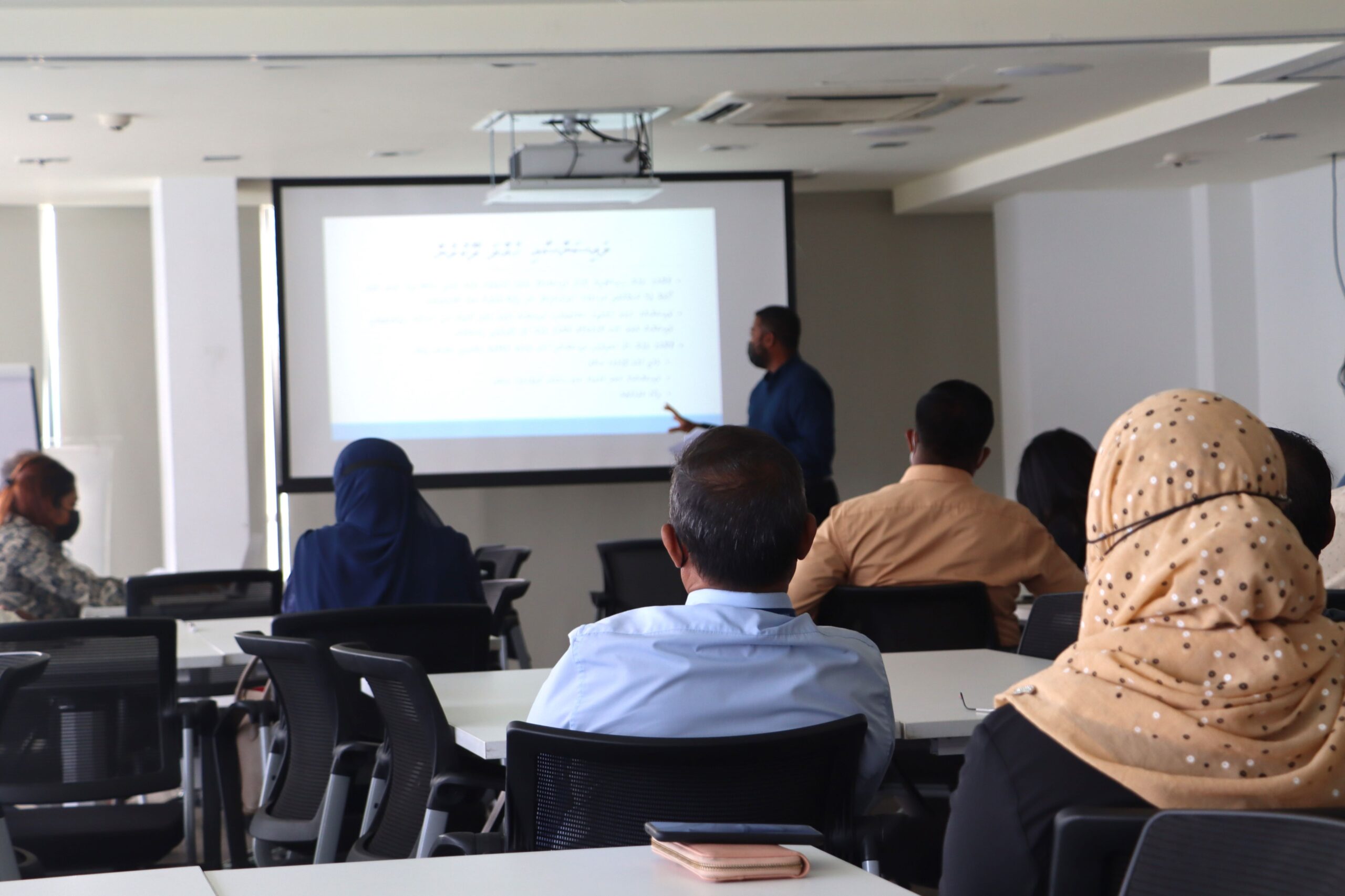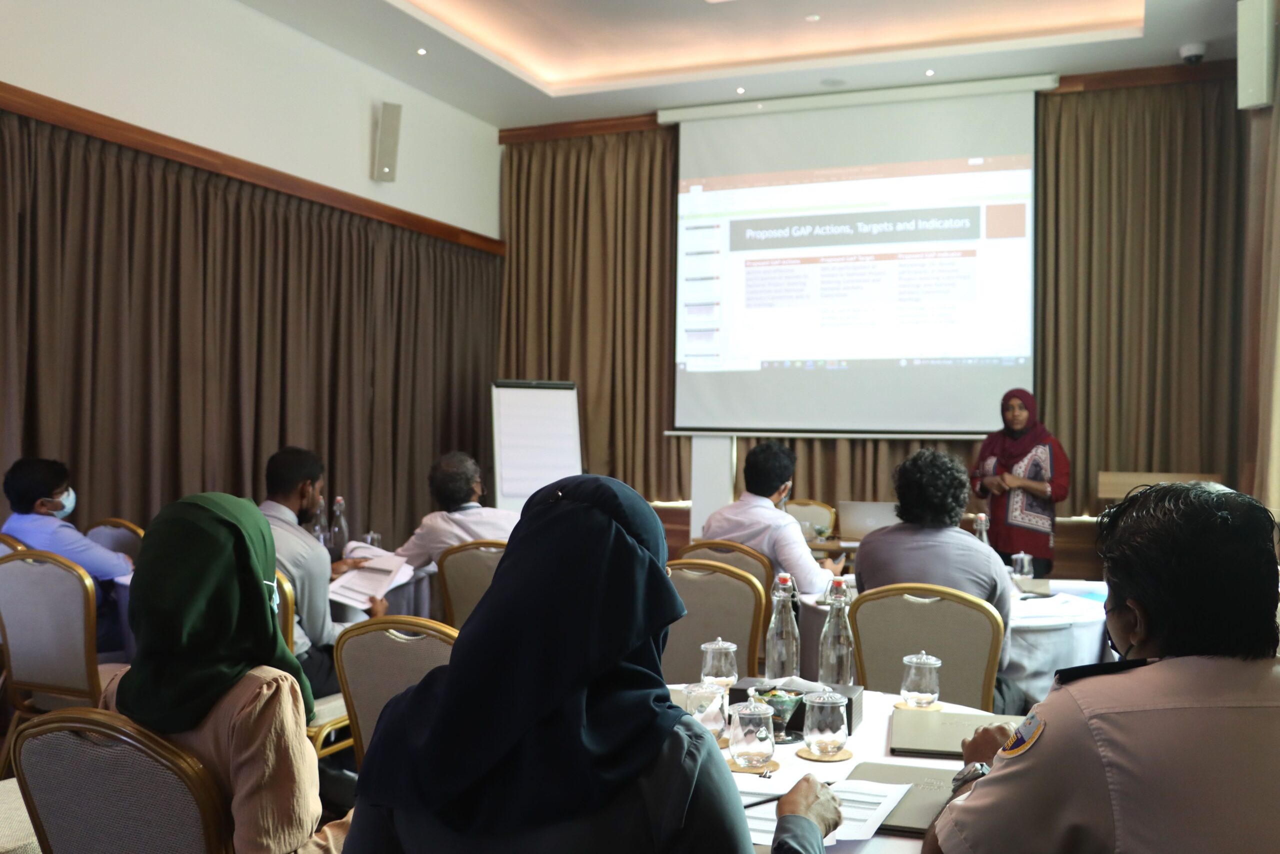 25 participants from various government institutions, civil society organizations, and contractors attended the training, along with representatives from several NGOs. The project’s Grievance Redress Mechanism (GRM), Environmental and Social Management Plan (ESMP), and Environmental and Social Management Framework (ESMF) were presented, with a particular focus on project activities in Addu City. These activities include the establishment of the Interim Hazardous Waste Storage Facility and the disposal of potentially PCB-containing equipment in both Addu and Fuvahmulah City.