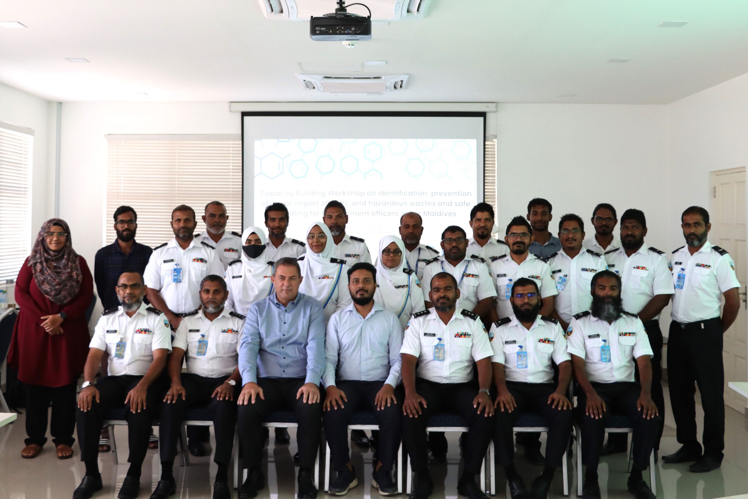Capacity building workshop on identification, prevention of illegal import of POPs, and hazardous wastes and safe handling was conducted for enforcement officers of the Ministry, Maldives Customs Service, Maldives Ports Authority, Maldives Police Service and Maldives National Defense Force who are based in Addu City