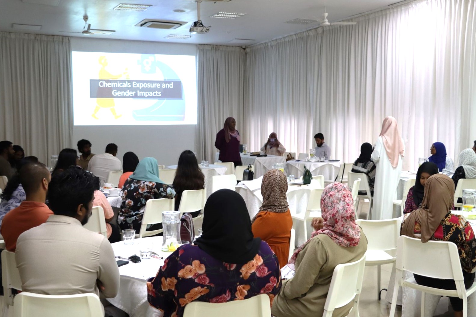 A training on Gender, Chemicals and Occupational Health and Safety (OHS) was held for 24 frontline workers from key institutions across the Greater Malé Region. This includes officials from Indira Gandhi Memorial Hospital (IGMH), Villimalé Hospital, Hulhumalé Hospital, ADK Hospital, Malé City Council, Housing Development Corporation (HDC), Waste Management Corporation Limited (WAMCO), Ministry of Defence, and the Utility Regulatory Authority (URA).