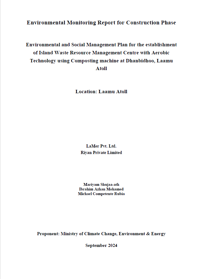 Environmental and Social Monitoring Report for Construction Phase Establishment of L. Dhanbidhoo Waste and Resource Management Centre