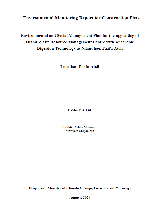 Environmental and Social Monitoring Report for Construction Phase Upgrading of L. Fonadhoo Waste and Resource Management Centre
