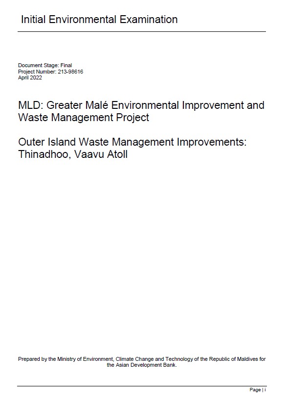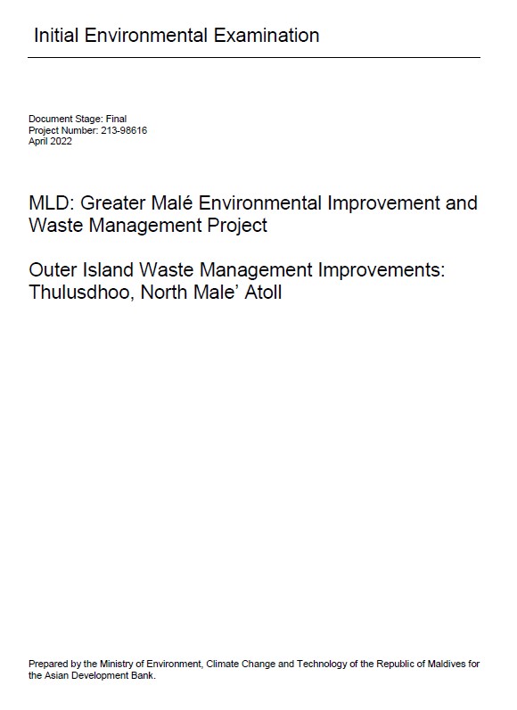Initial Environmental Examination – Outer Island Waste Management Improvements: Thulusdhoo, North Male’ Atoll