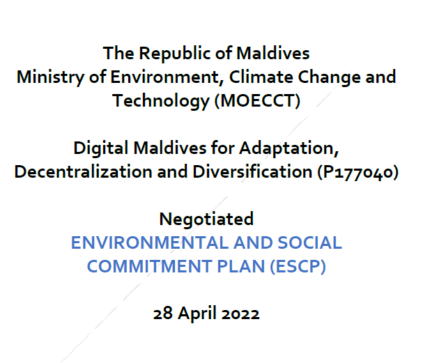Environmental and Social Commitment Plan – Digital Maldives for Adaptation, Decentralization and Diversification Project (P177040)