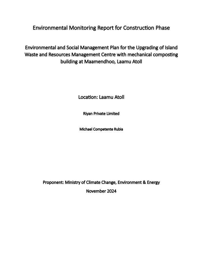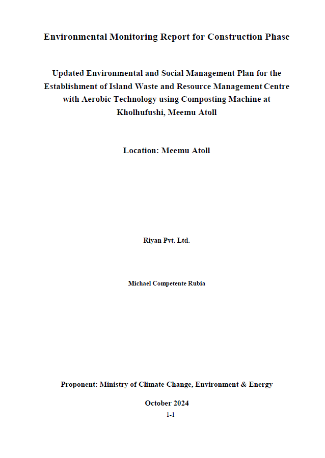 Environmental and Social Monitoring Report for Construction Phase of M. Kolhufushi Waste and Resource Management Centre